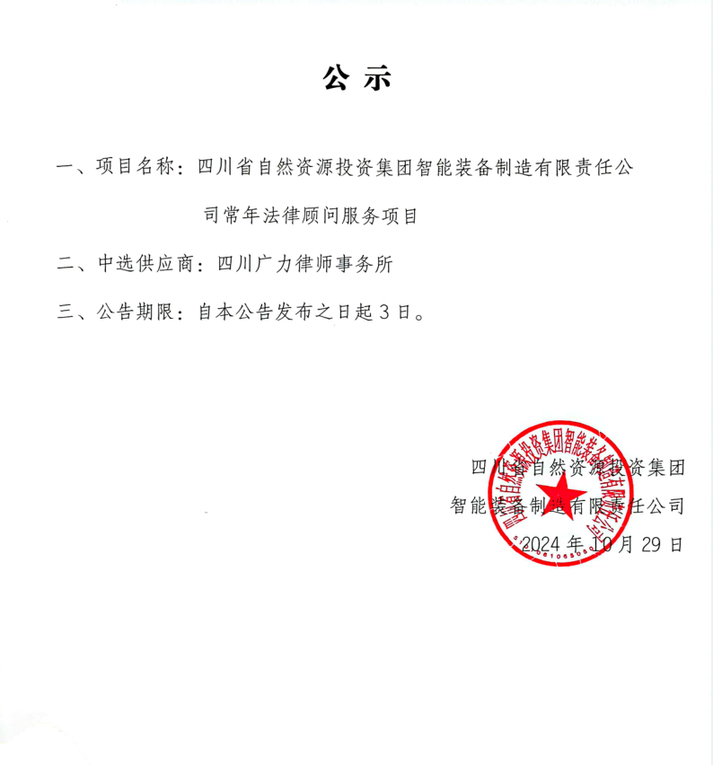 四川省自然资源投资集团智能装备制造有限责任公司合规体系建设比选项目